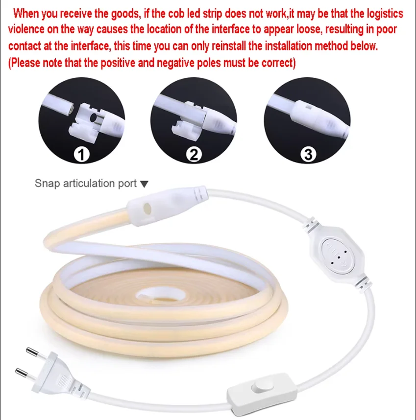 110V 220V Cob LED Tape Outdoor Waterproof Christmas Decor 5/10/20/30M Neon Led Strip with Switch Garden Lights For Kitchen Room